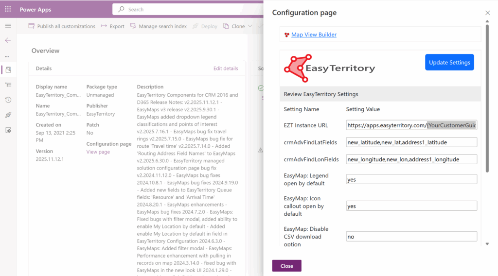 - Import and configure the EasyTerritory Managed Solution