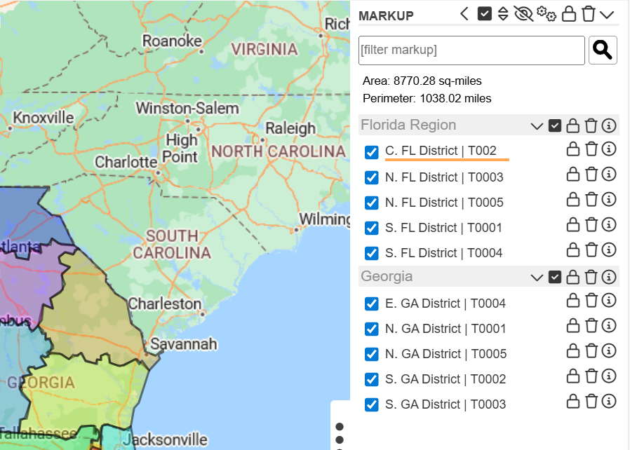 If your territory data uses hierarchical groupings such as Region → District → Territory, you can create group-level polygon geometry to support drill-down in Power BI. You have the ability to create up to 6 levels of groupings.