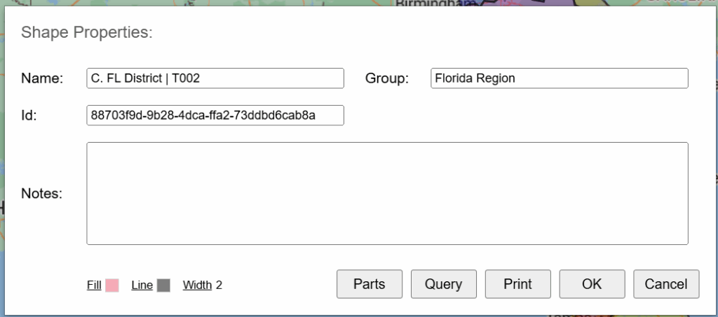 In the Shape Properties dialog, add your top-level group to the Group field. If you have additional hierarchy levels, enter each level from highest to lowest in the Name field, separating them with the pipe (“|”) character and ending with the territory name.