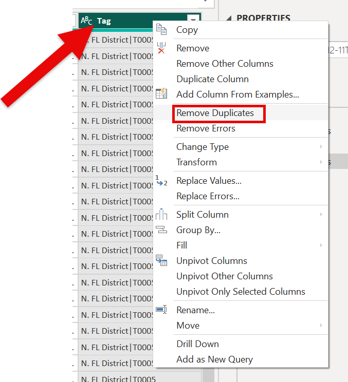 Select the EZT Hierarchy data source and right click the ‘Tag’ and select ‘Remove Duplicates’